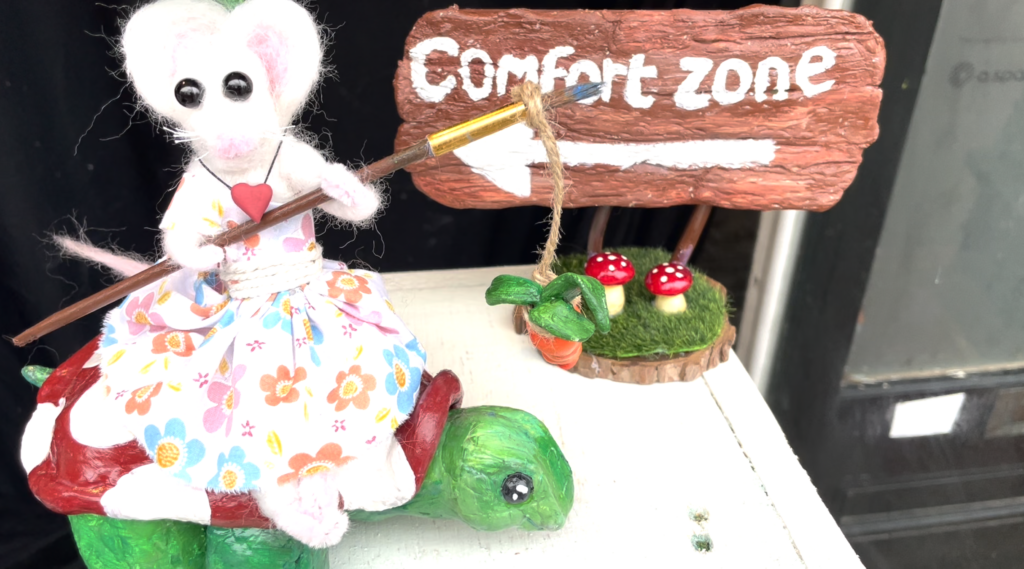 The purpose of this exhibition is to send a positive message: anxiety, while often challenging, can be eased and even transformed into a creative force. This installation is more than just an artistic expression; it’s a celebration of resilience and the potential for art to mirror our inner journeys. Through these felted scenes, I hope to offer comfort, understanding, and the idea that anxiety, in its complexity, can become a wellspring for creativity and personal growth.”