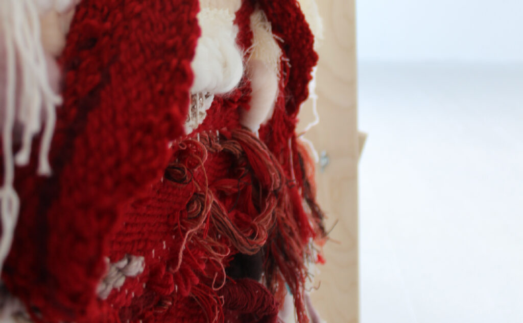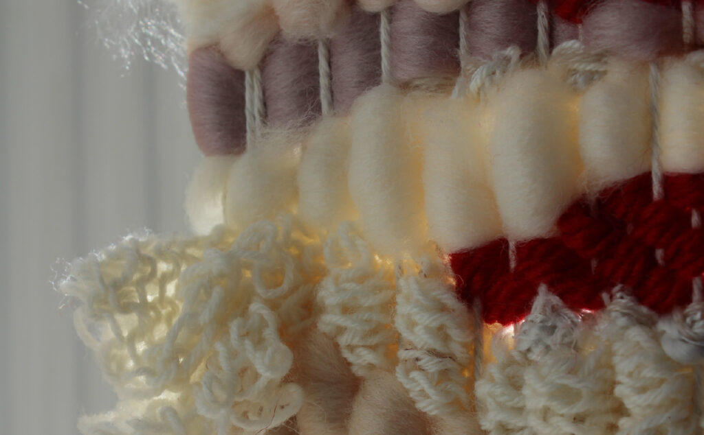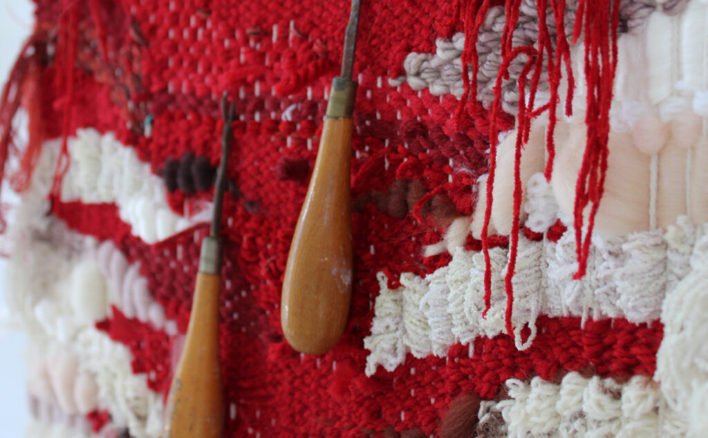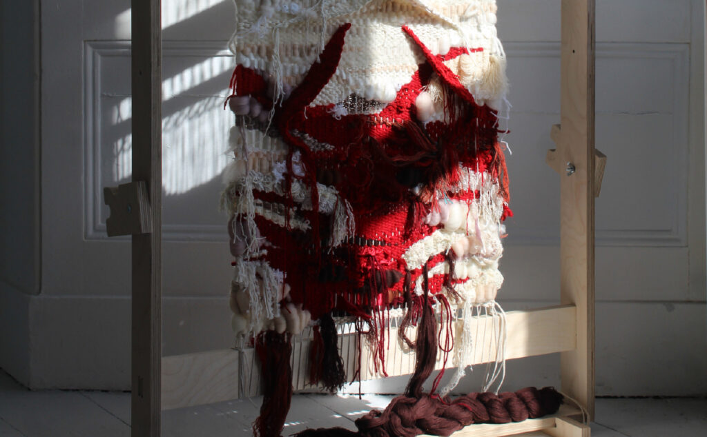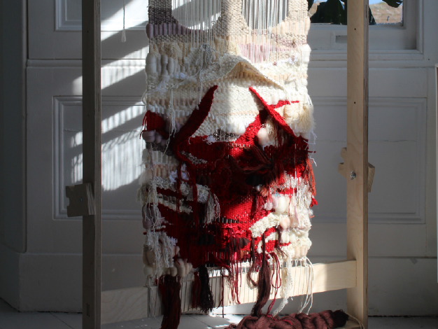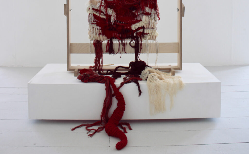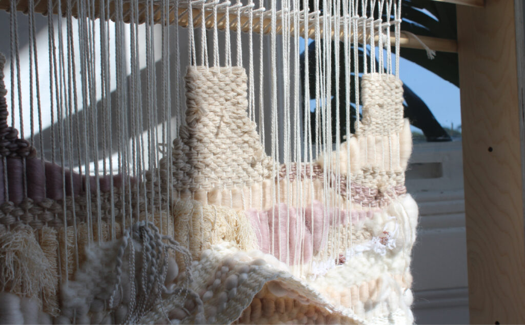 Jessica Babbini-Baker explores location and capturing time through fibre art whilst reflecting on her heritage. These tapestries or ‘case studies’, allow her to observe and work presently in response to location. Depicting eroded areas that expose the Earth’s heritage serve as a metaphor in her work for exploring her own deep-time reflecting on the pressures in which we are formed.