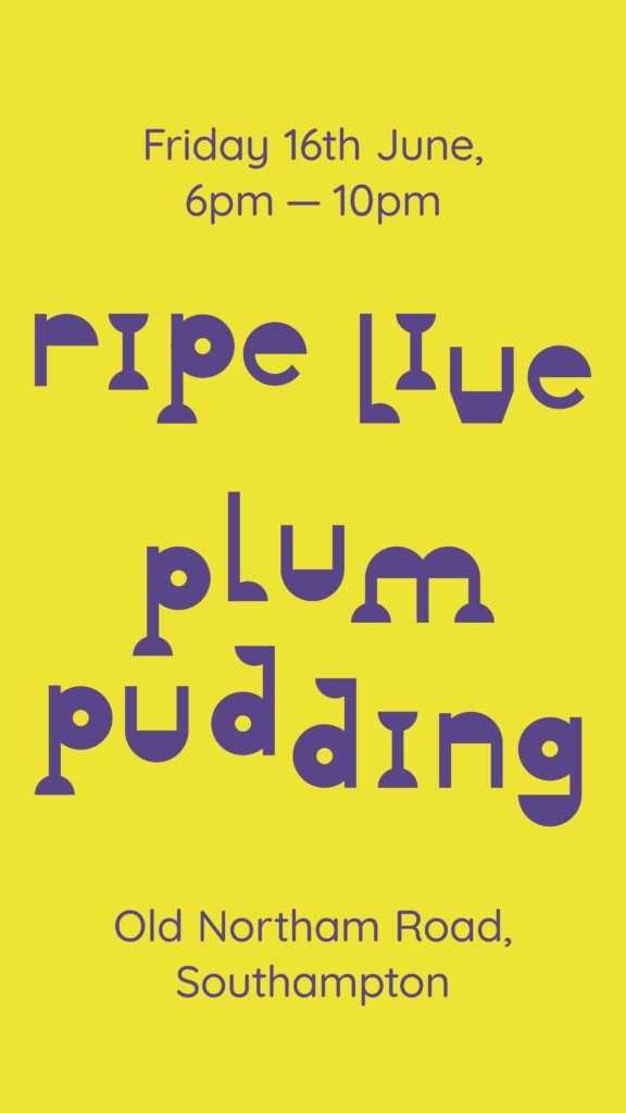 Plum Pudding was a collaborative project that aims to encourage artistic and professional development through a series of skills-sharing activities. Featuring work by 2022 graduates from Solent University and Winchester School of Art, University of Southampton, Anjella Stevenson, Ben Topping, Stephanie Parker and Signe Eliza Pook.